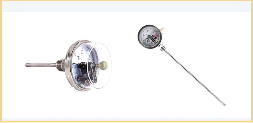 در دماسنج تماس الکتریکی دو فلزی ابزاری صنعتی است که اندازه گیری دما و عملکردهای کنترل خودکار را ترکیب می کند. بزرگترین تفاوت بین آن و یک دماسنج معمولی این است که علاوه بر نشان دادن دما ، می تواند به طور خودکار مدار را نیز کنترل کند.