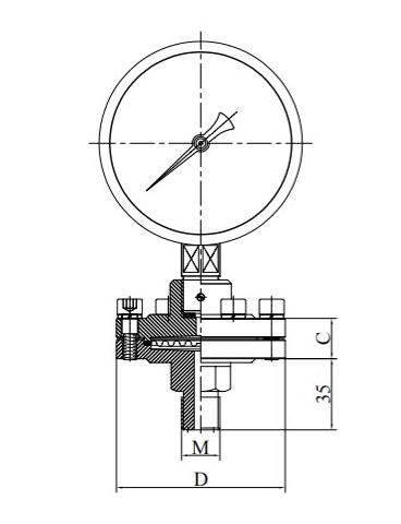 این ابزار اندازه گیری غیرمستقیم است. تغییر شکل دیافراگم جداسازی تحت فشار محیط اندازه گیری شده ، مایع آب بندی تحت فشار قرار می گیرد و فشار به فشار منتقل می شود.