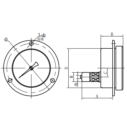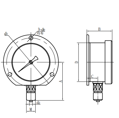 | yq100- ⅵ | 90 | 48 | 15 | φ 100 | φ 6 | φ 118 | φ 6 | m20 × 1.5 |