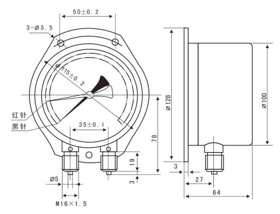 | دامنه اندازه گیری ( kpa ) | 0 ~ 1000 0 ~ 1200 0 ~ 1600 0 ~ 2500 |